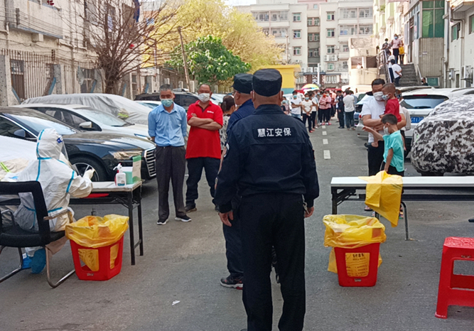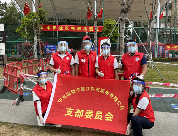 3月14日,在深圳市《关于做好全市三轮全员核酸检测的通告》发布后,公司总经理、党支部书记段仁交同志深知社区承担着繁重的核酸检测任务,随即组织带领公司党员、领导干部、入党积极分子“全力以赴,尽锐出战”,纷纷向“疫”而行—布场防控、支援核检、后勤保障,助力公司及各护卫点所在地社区开展大规模核酸检测工作,切实做到了“想社区之所想,急社区之所急、解社区之所难”。三轮全员核酸检测一周时间内,支部党员、入党积极分子参与志愿服务48人场次,共服务时长263小时。