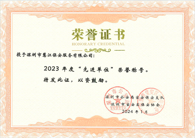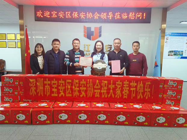 春节渐近福气到,年味渐浓情更浓。在2024年春节来临之际,深圳市宝安区保安协会领导莅临我司慰问指导工作,不仅为我司颁发了2023年度“先进单位”荣誉证书,还送上了慰问品和新年问候。公司党支部书记、总经理段仁交、副总经理唐海清对协会执行副会长兼秘书长李立君一行的到来表示了热烈的欢迎,同时对协会领导能在岁末年初的百忙之中莅临公司慰问、指导工作表达了衷心的感谢!